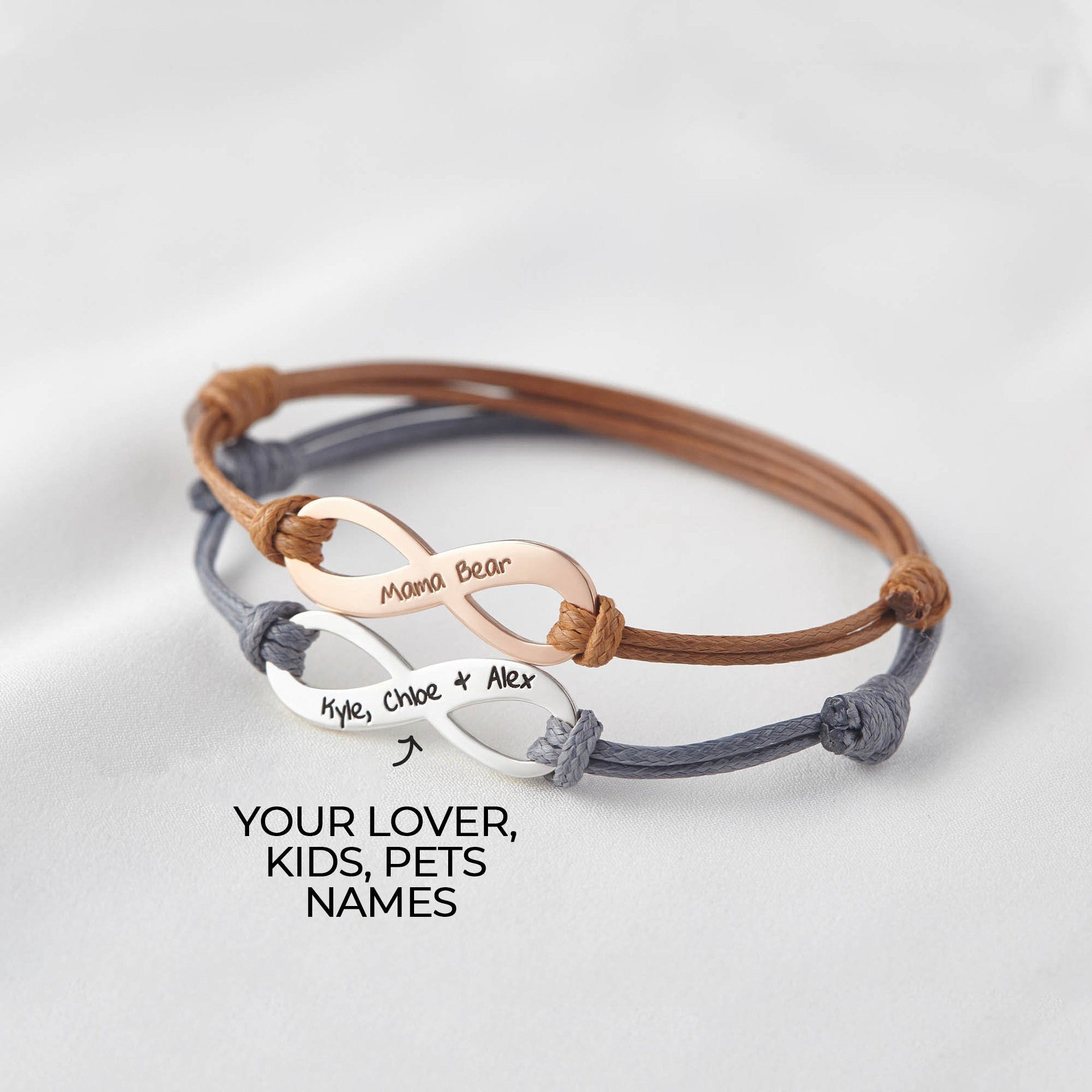 The Infinite Eternal Name-Engraved Braided Bracelet is a meaningful accessory. Handcrafted with care, it allows you to engrave the names of your lover, kids, or pets. The braided design symbolizes the unbreakable bond. With its infinite and eternal concept, it serves as a constant reminder of those dear to you, carrying love and memories.